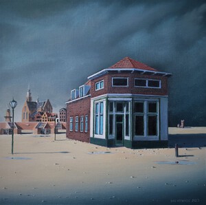 2023Gebouwen uit Maassluis in een imaginair landschap.
